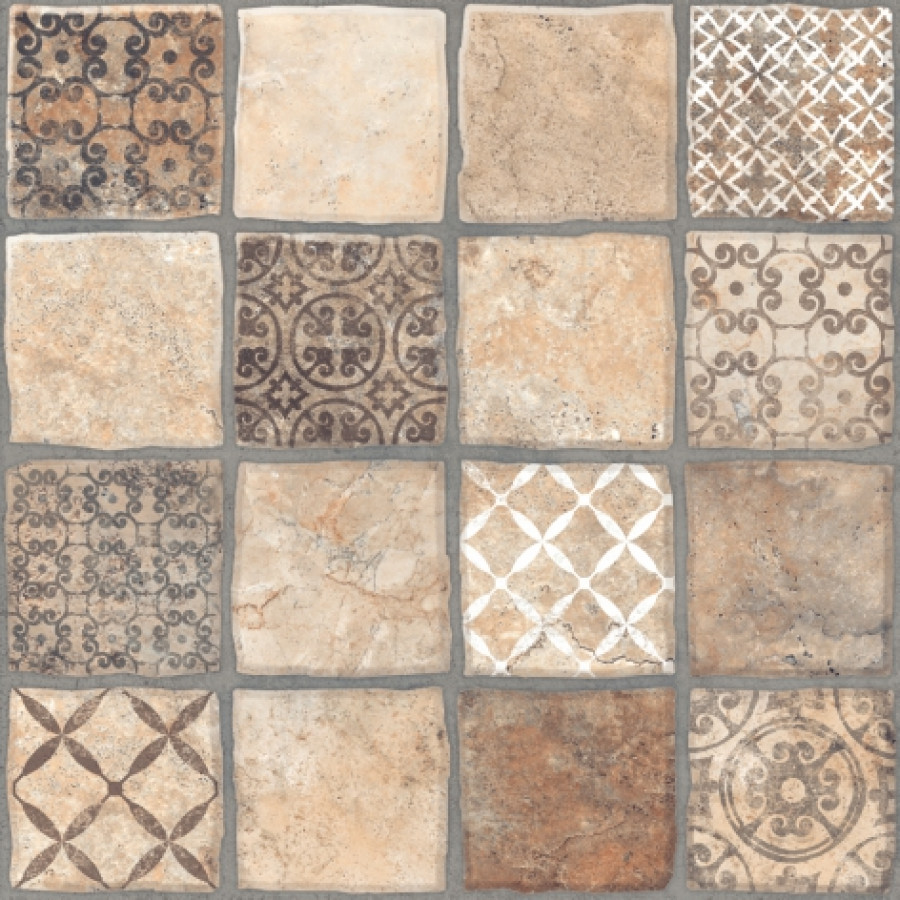 Керамогранит 40x40 Карфаген 3Д декорированный матовая бежевый Керамин