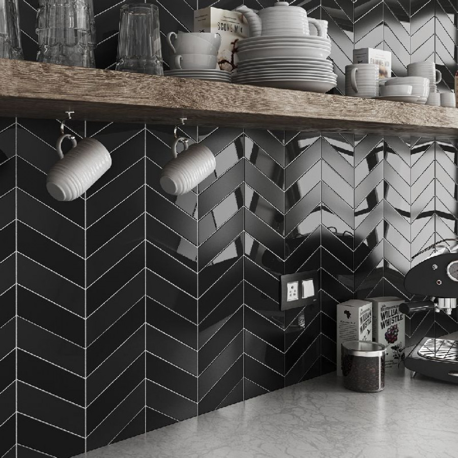 Плитка 20x5 Black Right Chevron Wall глянцевая черный однотонный Equipe
