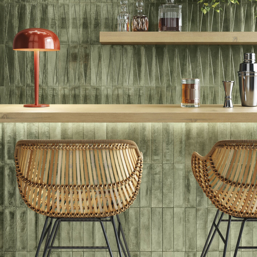 Плитка 25x6 Green Glossy Bari глянцевая зеленый однотонный 9мм Harmony