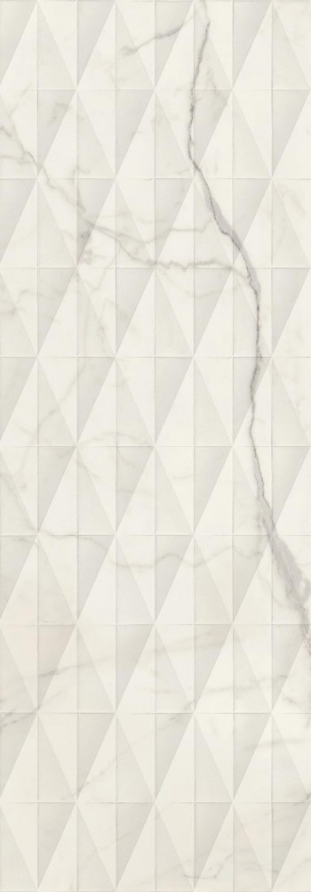 Плитка 120x40 Allmarble Wall Statuario Struttura Pave Lux 3D глянцевая белый 8мм Marazzi